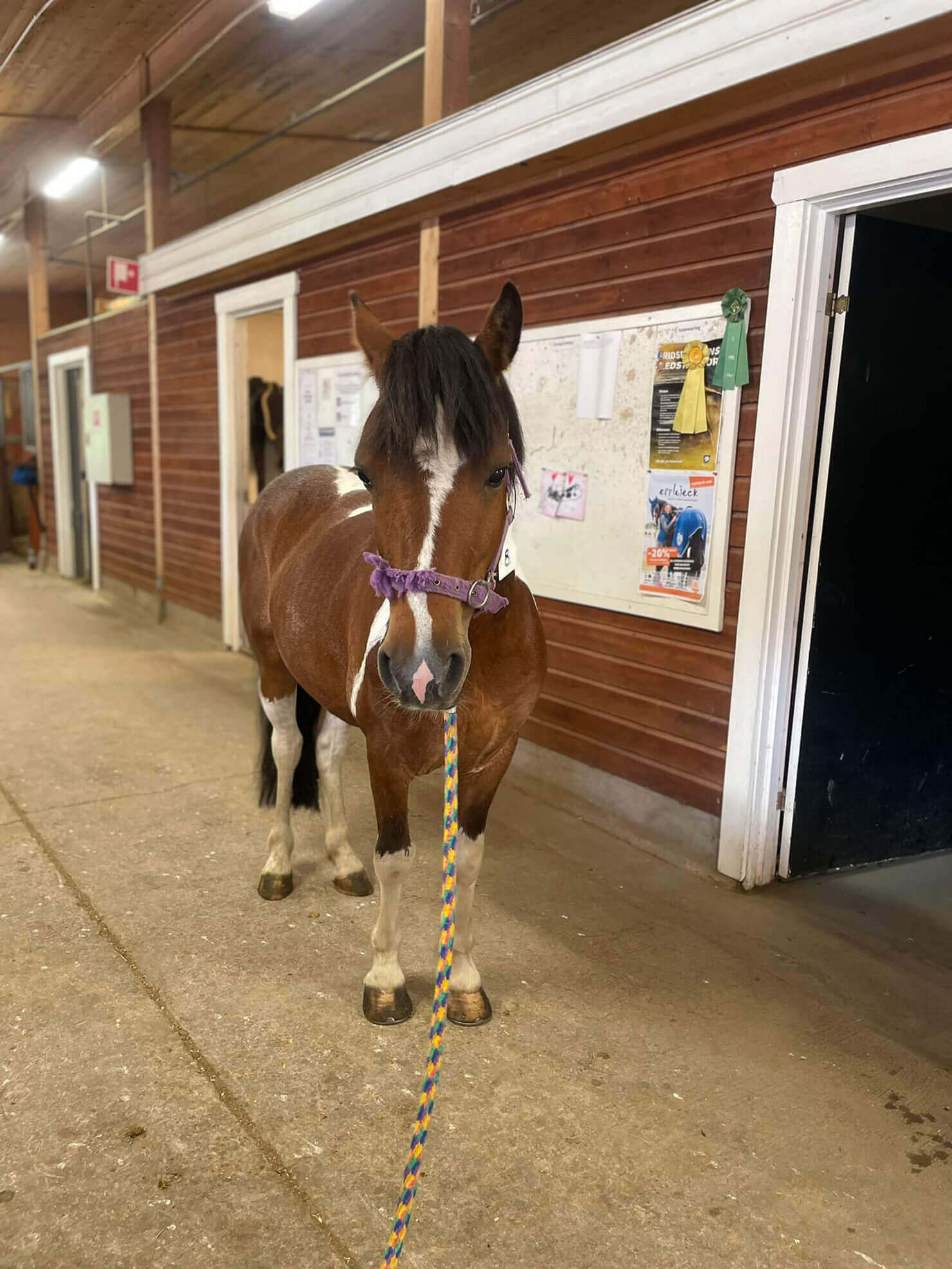 Marre är en B ponny på 126cm som är född 2015. Hon är importerad från Irland och har jobbat här sedan 2021. Marre är stallets tryggaste ponny, hon har inte så mycket gas men med ett spö i handen kan man komma långt. Hon hoppar bra men inte gärna så högt då måste man va lite mer övertygande. Hon är snäll i all hantering i stallet.